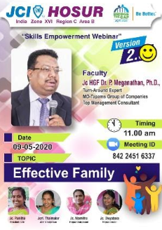 | 5/9/2020 | Effective Family | How to be an Effective Family and balance work life | Dr P Meganathan PhD – MD Tapams Group | Members of Junior Chamber International India |